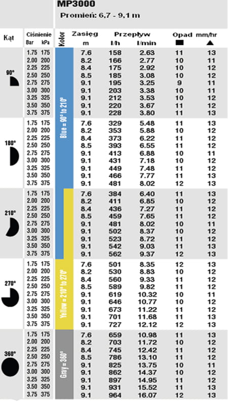 - Niższe ciśnienie pozwala stosować większe odległości ciągów ze zraszaczami niż w przypadku tradycyjnych dysz